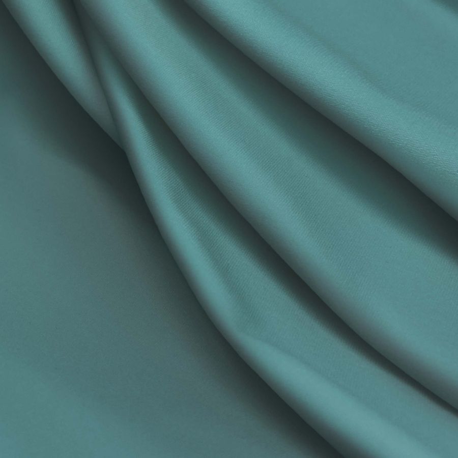 La tela base es una Lycra Reciclada - Seal de 230 gr/m2, compuesta por un 75% de poliéster y un 25% de elastano. El color liso impreso es un azul Cadet Blue con un CMYK de 65 21 37 4. Este color se caracteriza por ser un tono suave y elegante con un toque de gris en su composición, lo que lo hace versátil para diversas aplicaciones. Combina especialmente bien con tonos tierra como el beige o el marrón, así como con naranjas o amarillos suaves.