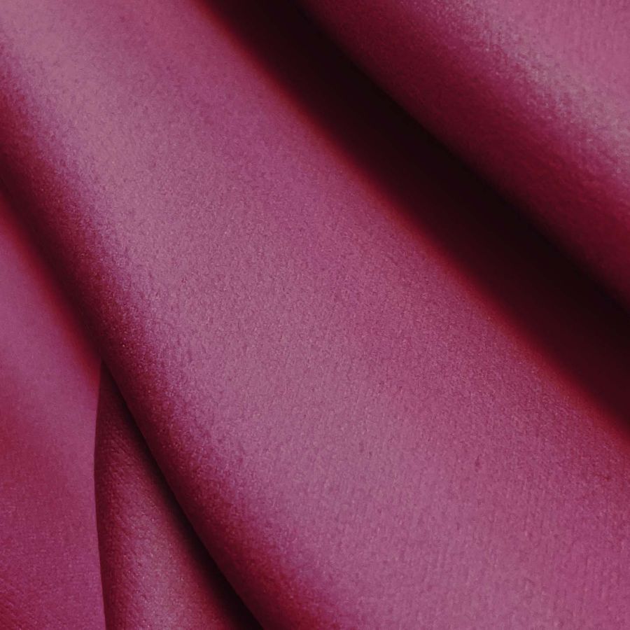 La tela base de la Microfibra para Toalla - Swing es 100% poliéster, con un gramaje de 200 gr/m2 y una textura suave y lisa. El color liso que se imprime en este tejido es un Rojo Vino, con una composición CMYK de 29 87 36 23, lo que indica una predominancia de tonos magenta y rojos con un toque de amarillo.