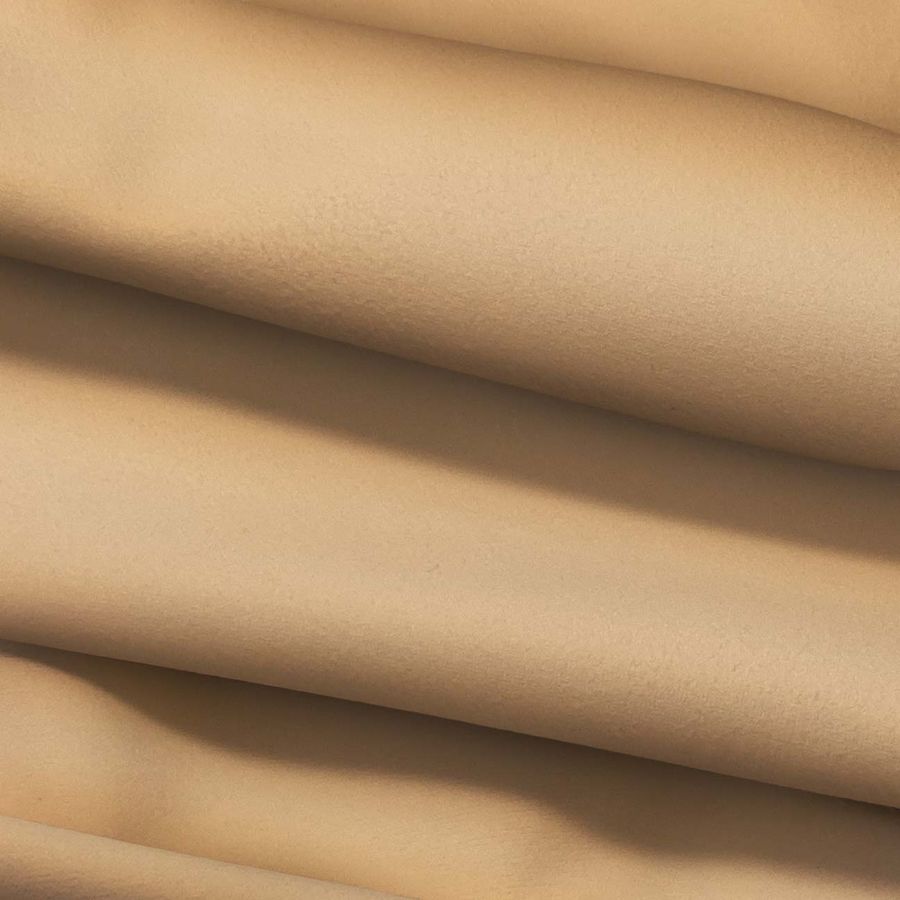 La tela base es una Microfibra para Toalla - Swing, compuesta al 100% por poliéster y con un gramaje de 200 gr/m2, con un ancho de 160 cm. El color liso impreso en la tela es un tono de Rojo-Ocre cuyos valores de tinta CMYK son 0-37-56-0. Este color se caracteriza por ser vibrante y cálido, y combina especialmente bien con tonos tierra y naranjas.