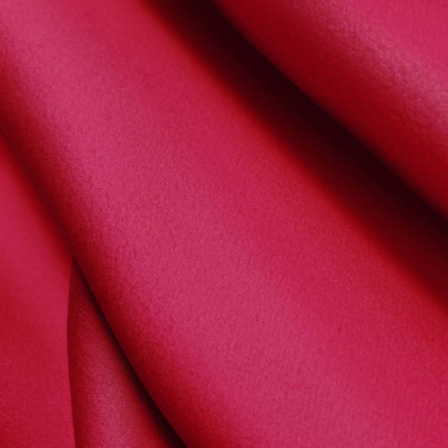 La tela base es Microfibra para Toalla - Swing, compuesta por 100% Poliéster con un gramaje de 200 gr/m2 y un ancho de 160 cm, en color liso impreso en Rojo Vino Tinto con un CMYK de 12 100 73 3. Este color secundario transmite pasión, elegancia y sofisticación y combina especialmente bien con el negro y el dorado. Es importante destacar que el tejido está impreso con este color liso a una sola cara por impresión digital textil.