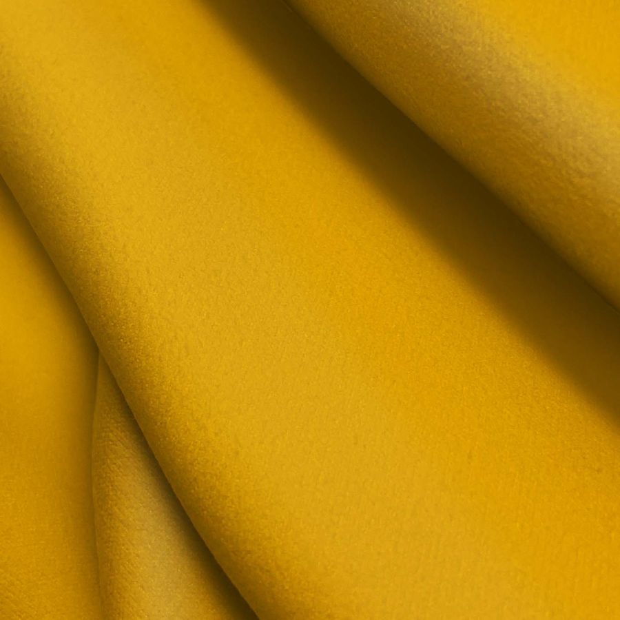 La tela base es la Microfibra para Toalla - Swing, compuesta en su totalidad por poliéster con una densidad de 200 gr/m2, con un ancho de 160 cm. El color liso impreso en la tela es Naranja Azafrán, con una tinta Cyan de 1, Magenta de 40, Yellow de 96 y Black de 0, representando un CMYK de 1 40 96 0. Su color simboliza la vitalidad, la energía y la aventura, siendo un color secundario compuesto de naranja y amarillo. Combina perfectamente con tonos tierra, verdes y azules. Cabe destacar que el tejido está impreso con el color liso a una sola cara por impresión digital textil, lo que resulta en un acabado nítido y vibrante.