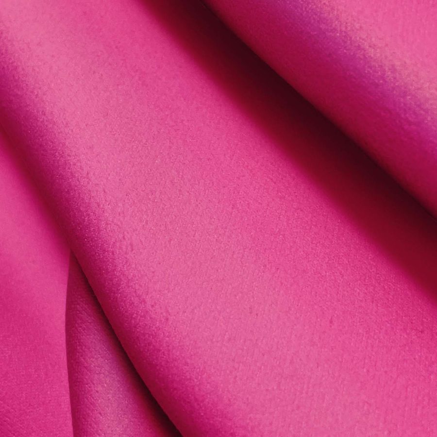 La tela base de esta prenda es la Microfibra para Toalla - Swing, compuesta por 100% poliéster, con un peso de 200 gr/m2 y un ancho de 160 cm. Su color liso impreso es Rosa,Barbie, con un CMYK de 0 86 10 0, lo que refleja una tonalidad rosa fuerte con matices de magenta y un toque de amarillo. Este color combina perfectamente con blancos y tonos pastel que le brindan un aspecto elegante y delicado.