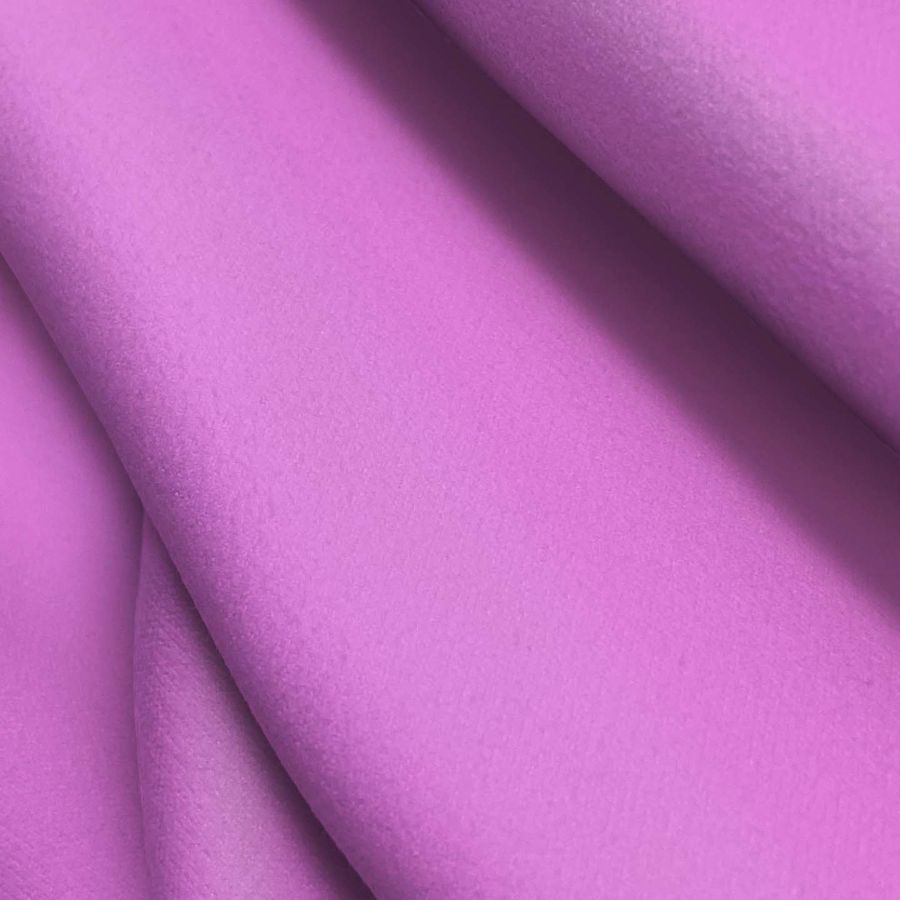 La tela base es la Microfibra para Toalla - Swing, compuesta al 100% de poliéster con un gramaje de 200 gr/m2 y una anchura de 160 cm. El color liso impreso es una combinación de rosa claro y fucsia, destacándose en el CMYK con 20% de cian y 55% de magenta, sin presencia de tinta amarilla ni negra. Además, este color se combina especialmente bien con otros tonos rosa y gris.