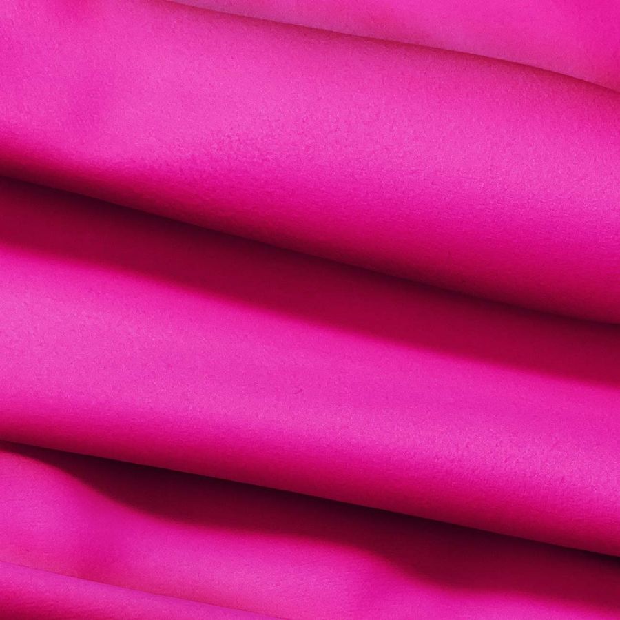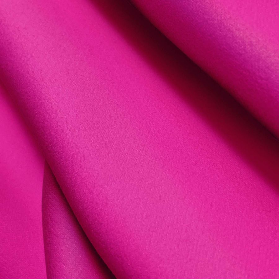 La tela base de esta prenda es una Microfibra para Toalla - Swing, con una composición del 100% de poliéster, un gramaje de 200 gr/m2 y un ancho de 160 cm. El color liso impreso es rosa fluorescente, con una tinta magenta del 90% y una combinación CMYK de 0 90 0 0. Este color secundario se caracteriza por su intensidad y frescura, con una capacidad de generar un ambiente alegre y juvenil. Combina especialmente bien con tonalidades de azul marino, blanco y negro. Es importante destacar que el tejido está impreso con este color liso a una sola cara por impresión digital textil, lo que significa que no es un tejido tintado sino impreso por una sola cara.