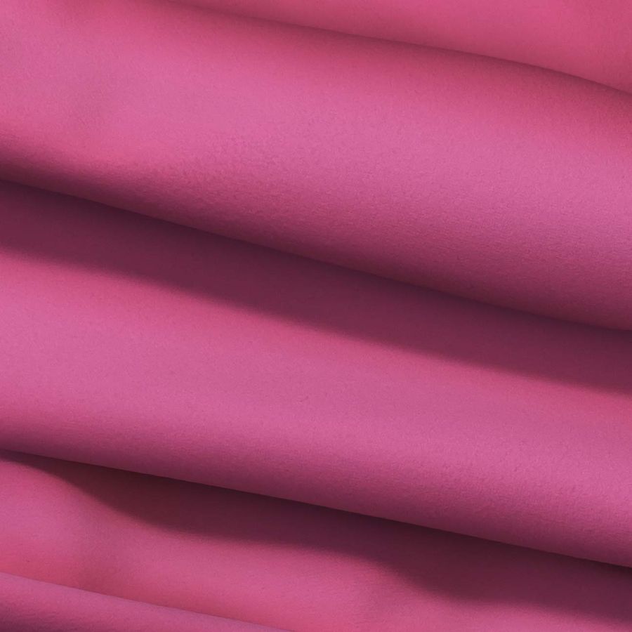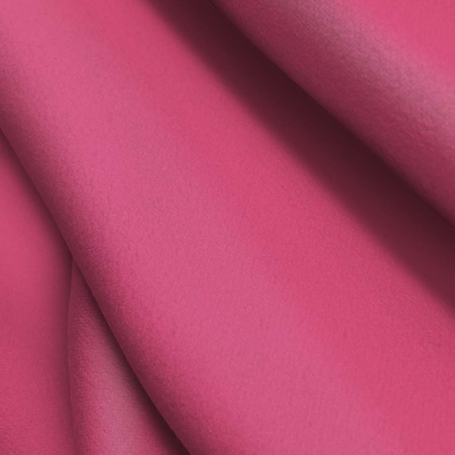 La tela base es una Microfibra para Toalla - Swing de 100% poliéster con un gramaje de 200 gr/m2 y un ancho de 160 cm. El color liso impreso es un rosa oscuro con un CMYK de 2 79 24 0, esto significa que está compuesto principalmente por tinta magenta y cuenta con una pequeña proporción de tinta cian y amarilla. Combina muy bien con colores claros como el blanco, el beige y el gris.