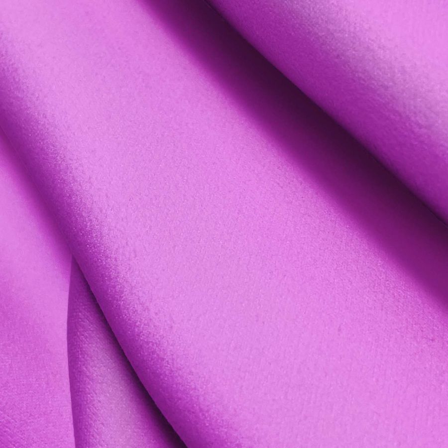 La tela base de la Microfibra para Toalla - Swing es de tipo microfibra con una composición del 100% de poliéster, con un gramaje de 200 gr/m2 y una anchura de 160 cm. El color liso impreso es de color rosa Shocking Crayola, con una tinta Cyan del 27, una tinta Magenta del 60, una tinta Yellow del 0 y una tinta Black del 0, con un valor CMYK de 27 60 0 0.