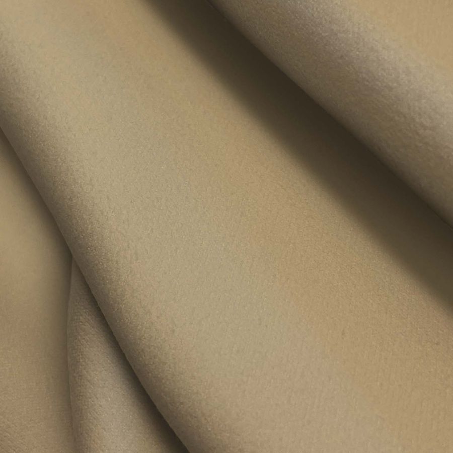 La tela base de este tejido es la microfibra para toalla Swing, compuesta al 100% de poliéster, con un gramaje de 200 gr/m2 y un ancho de 160 cm. El color liso impreso en la tela es un tono marrón ocre, con una combinación de tintas de cian, magenta, amarillo y negro en una proporción de 26, 33, 53 y 12 respectivamente. Este color secundario tiene una apariencia cálida y natural, encajando perfectamente en ambientes relajados y serenos. Combina especialmente con tonalidades neutras como el beige, marrón y gris, así como con azules y verdes suaves.