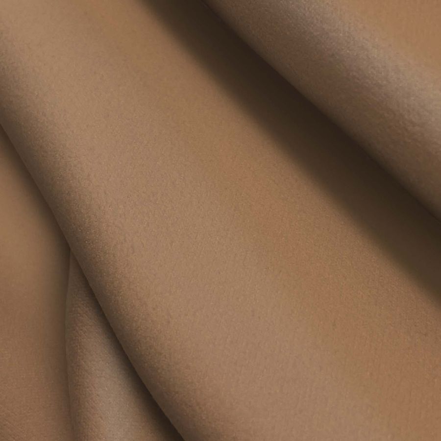 La tela base es la Microfibra para Toalla - Swing, de composición 100% poliéster y un gramaje de 200 gr/m2. El color liso impreso es de tonalidad Marron Toscano Tostado, cuyo CMYK es de 28 47 61 21. Este color tiene un matiz marrón rojizo con un subtono tostado que evoca a la tierra y la naturaleza. Combinado con otros tonos tierra como el beige o el arena, el Marron Toscano Tostado crea una atmósfera cálida y acogedora en los ambientes. La tela está impresa con este color de forma digital a una sola cara, lo que significa que sólo una cara está impresa con el color liso.