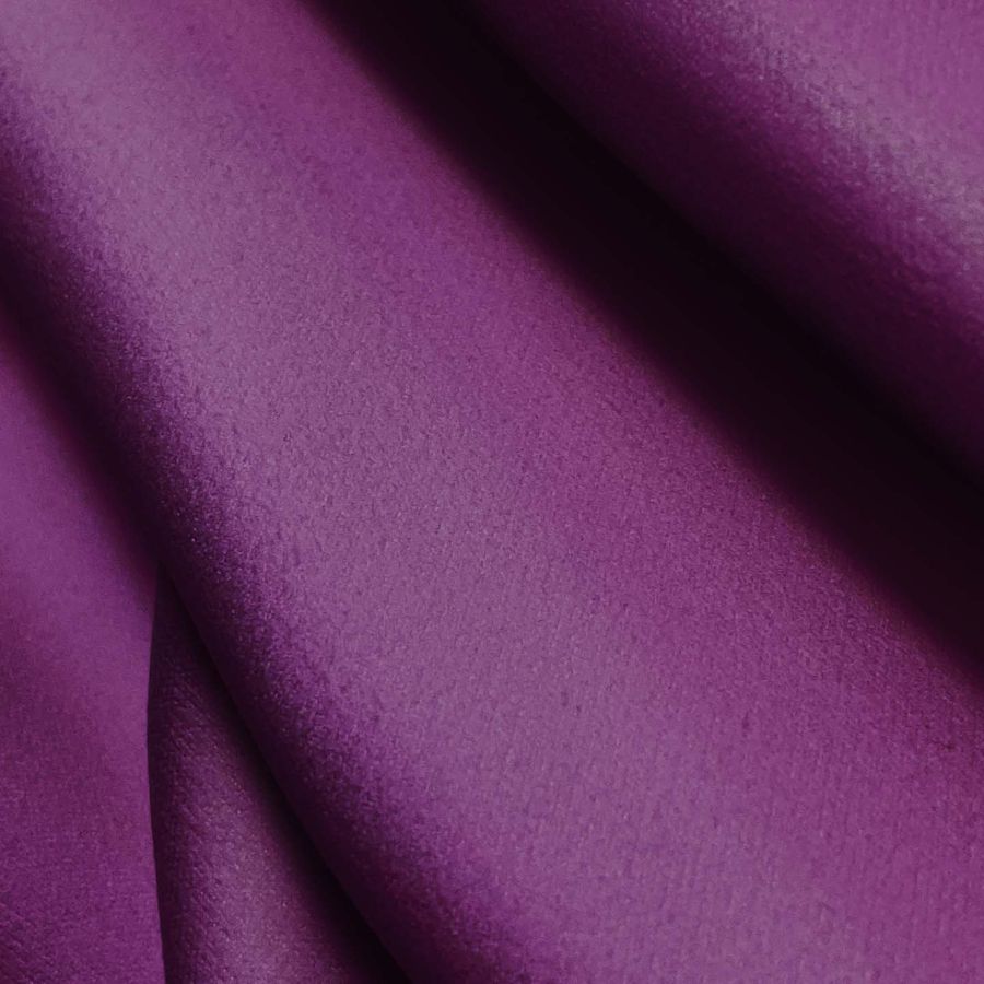 La tela base de esta descripción es la Microfibra para Toalla - Swing, una tela de microfibra compuesta al 100% por poliéster con un gramaje de 200 gr/m2 y un ancho de 160 cm. El color liso impreso es Morado Bizantino con las siguientes proporciones en la tinta CMYK: 62 95 26 17. Este color secundario es una mezcla profunda de morado con toques de tonos azules y rojos, que transmite elegancia y sofisticación. Complementa bien con una amplia variedad de colores, especialmente con tonos beige, marrones y dorados, así como con grises y tonos blancos puros.