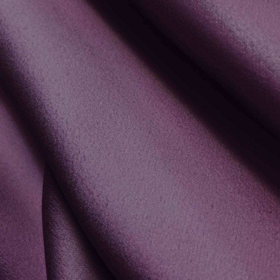 La tela base, Microfibra para Toalla - Swing de composición 100% POLIÉSTER, es suave al tacto y lisa en textura. El color liso impreso es un morado bizancio oscuro, con CMYK de 62 78 38 36, que combina muy bien con colores claros o pasteles, así como con tonos oscuros y brillantes.