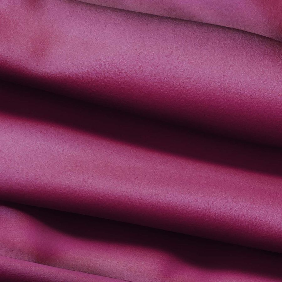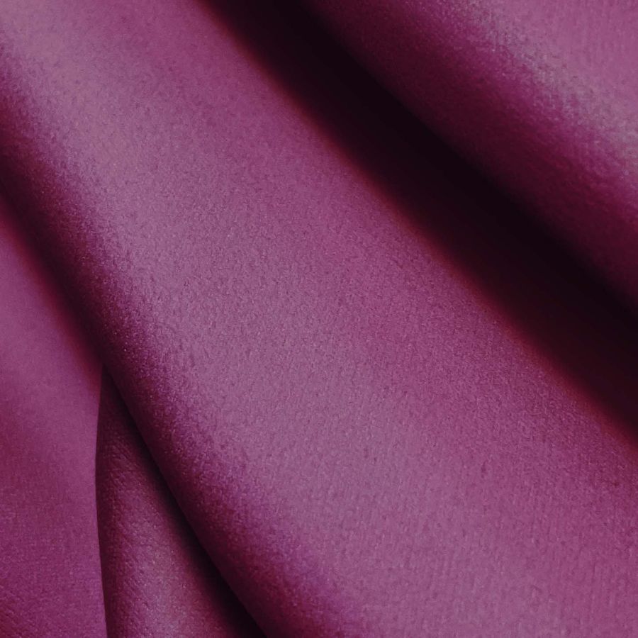 La tela base es una microfibra para toalla de 100% poliéster, con un gramaje de 200 gr/m2 y un ancho de 160 cm. El color liso impreso es de un hermoso tono morado con una base de Boysemberry, que se logra con una combinación de tintas de cian, magenta, amarillo y negro, con un CMYK de 44 88 29 21. Es importante destacar que la tela está impresa con el color liso a una sola cara por impresión digital textil, lo que permite obtener una gran precisión y riqueza de color.