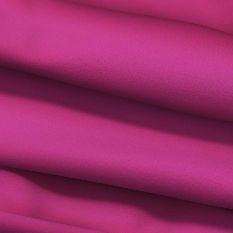 La tela base es la Microfibra para Toalla - Swing, compuesta por 100% poliéster, con un gramaje de 200 gr/m2 y un ancho de 160 cm. El color liso impreso es de tonalidades Morado y Magenta, con una combinación de tintas Cyan (15), Magenta (90), Yellow (21) y Black (2), con un CMYK de 15 90 21 2. El color secundario es el Magenta, un tono intenso y vibrante que simboliza la pasión y el amor, y que combina perfectamente con tonos neutros como el gris, el blanco o el negro. Es un color de gran impacto visual y elegancia que transmite sofisticación y modernidad. La tela está impresa con el color liso en una sola cara, mediante impresión digital textil.