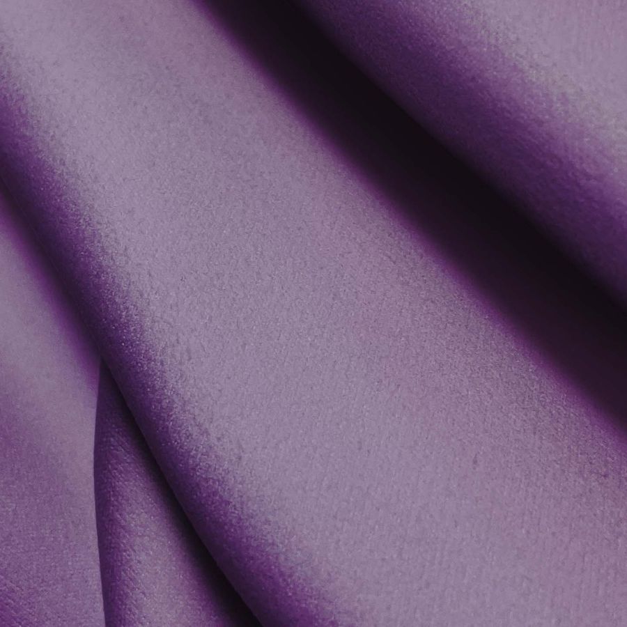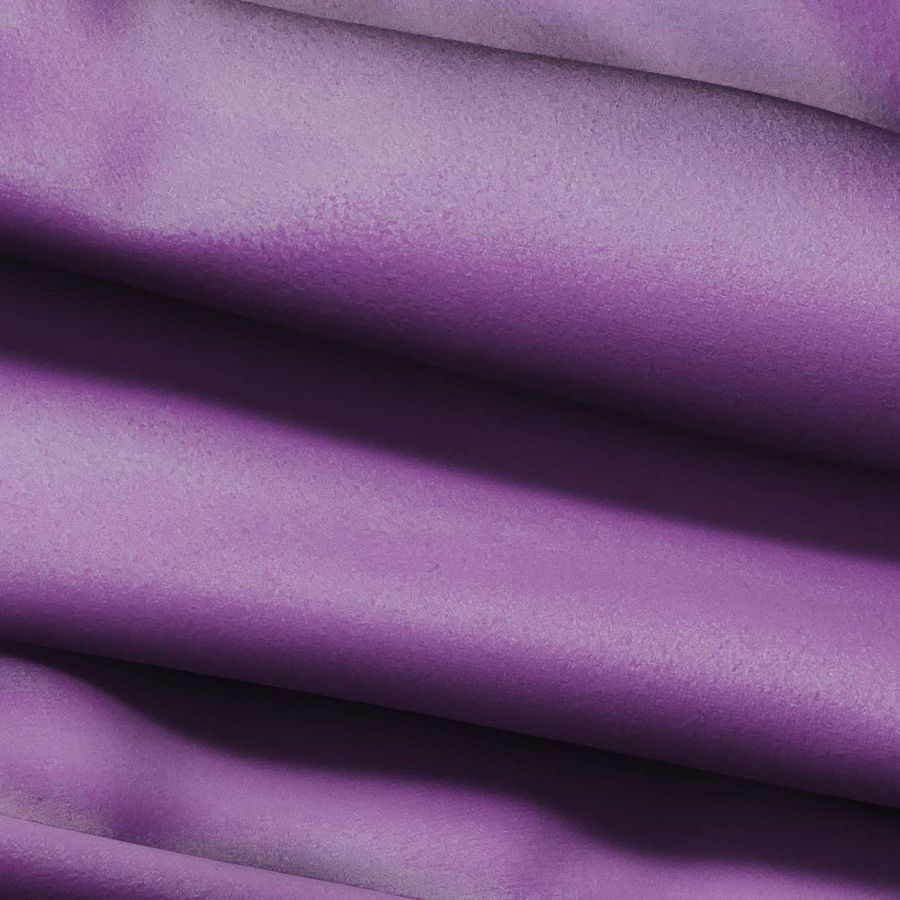 La tela base de la microfibra para toalla - Swing es una tela suave y de textura lisa, compuesta al 100% de poliéster con un gramaje de 200 gr/m2, que mide 160 cm de ancho y se presenta en un color liso impreso en morado llamado Pomp and Power (CMYK: 55 67 20 4). Este color morado es representado por una combinación de tintas cyan, magenta y amarillo, destacando en particular la alta presencia de tinta magenta. Este color secundario tiene una conexión emocional con la creatividad, la sensualidad y la espiritualidad, y se combina especialmente bien con tonos como el rosa, el azul, el gris, el negro y el oro.
