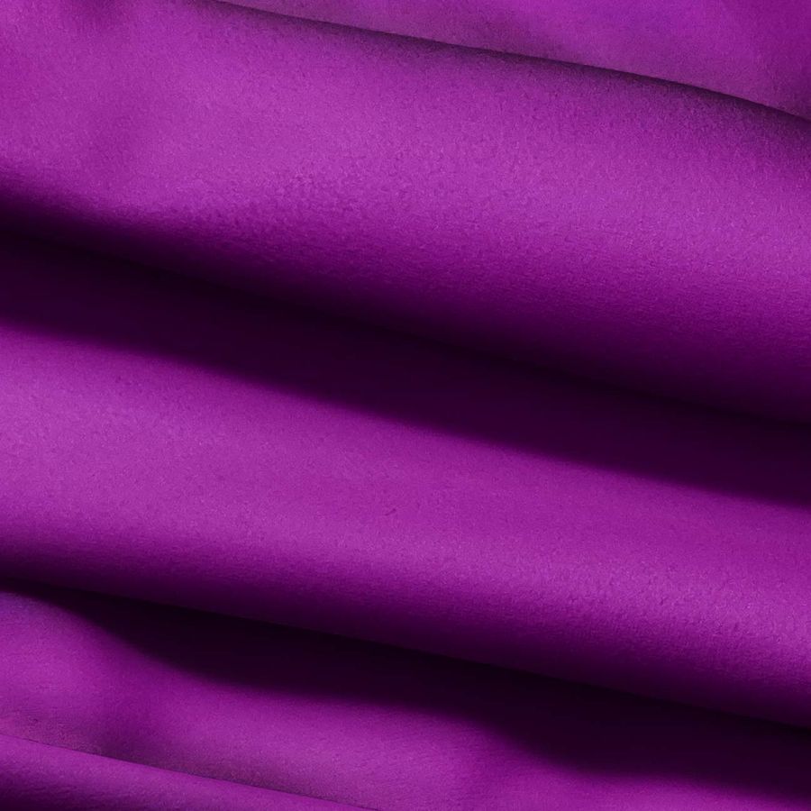 La tela base de esta prenda es una microfibra para toalla, compuesta por 100% poliéster con un gramaje de 200 gr/m2 y un ancho de 160 cm. El color liso impreso es morado-púrpura real, con una tinta Cyan de 64, Magenta de 100, Yellow de 4 y Black de 1, según el modelo CMYK. Este color ofrece una sensación de misterio, creatividad y riqueza, combinando perfectamente con tonos más claros de rosa, verde, azul y blanco.