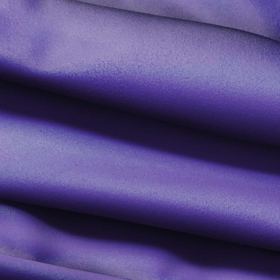 La tela base es la Microfibra para Toalla - Swing, compuesta al 100% de poliéster y con un gramaje de 200 gr/m2. Su ancho es de 160 cm y está impresa con un color liso de tonalidades moradas y ultravioleta con un CMYK de 72 73 11 1. El color secundario es el ultravioleta, un tono misterioso que evoca la noche y la intuición. Este color combina a la perfección con los tonos verdes y grises, haciéndolo ideal para un estilo bohemio o zen. La tela tiene una textura suave y lisa, y está impresa a una sola cara por impresión digital textil.