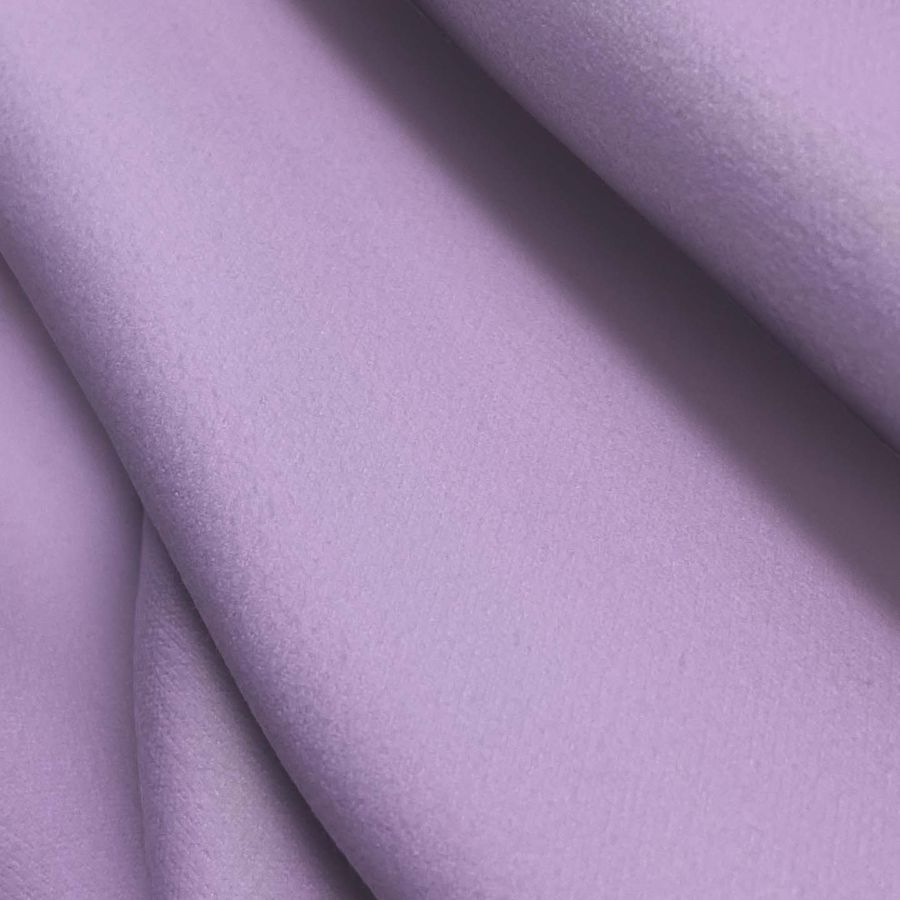 La tela base es la Microfibra para Toalla - Swing de 100% poliéster con un gramaje de 200 gr/m2 y un ancho de 160 cm, ideal para aplicaciones en textil/hogar como toallas de baño o paños de cocina, así como en deportivo para toallas o albornoces. Es de textura suave y lisa al tacto, perfecta para el verano, y se presenta en un intenso y vibrante color morado-violeta claro con un CMYK de 24-39-0-0. Este color primario es una mezcla del rojo y el azul, simbolizando la creatividad y la tranquilidad. Se combina maravillosamente con otros tonos de morado, así como con el negro o el blanco.