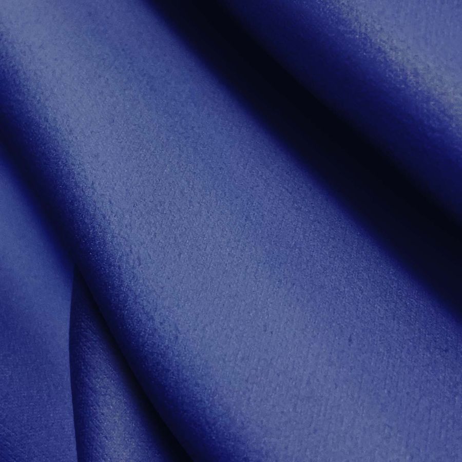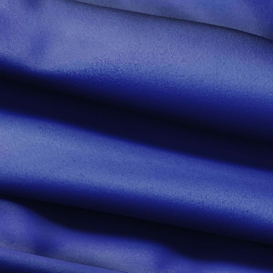 La tela base de Microfibra para Toalla - Swing es 100% poliéster con un gramaje de 200 gr/m2 y un ancho de 160 cm. El color liso impreso en esta tela es un Morado/Violeta de Cobalto, con una combinación de tinta Cyan 95, Magenta 84, Yellow 9 y Black 1, lo que da como resultado un CMYK de 95 84 9 1. La tela está impresa con el color liso a una sola cara por impresión digital textil.