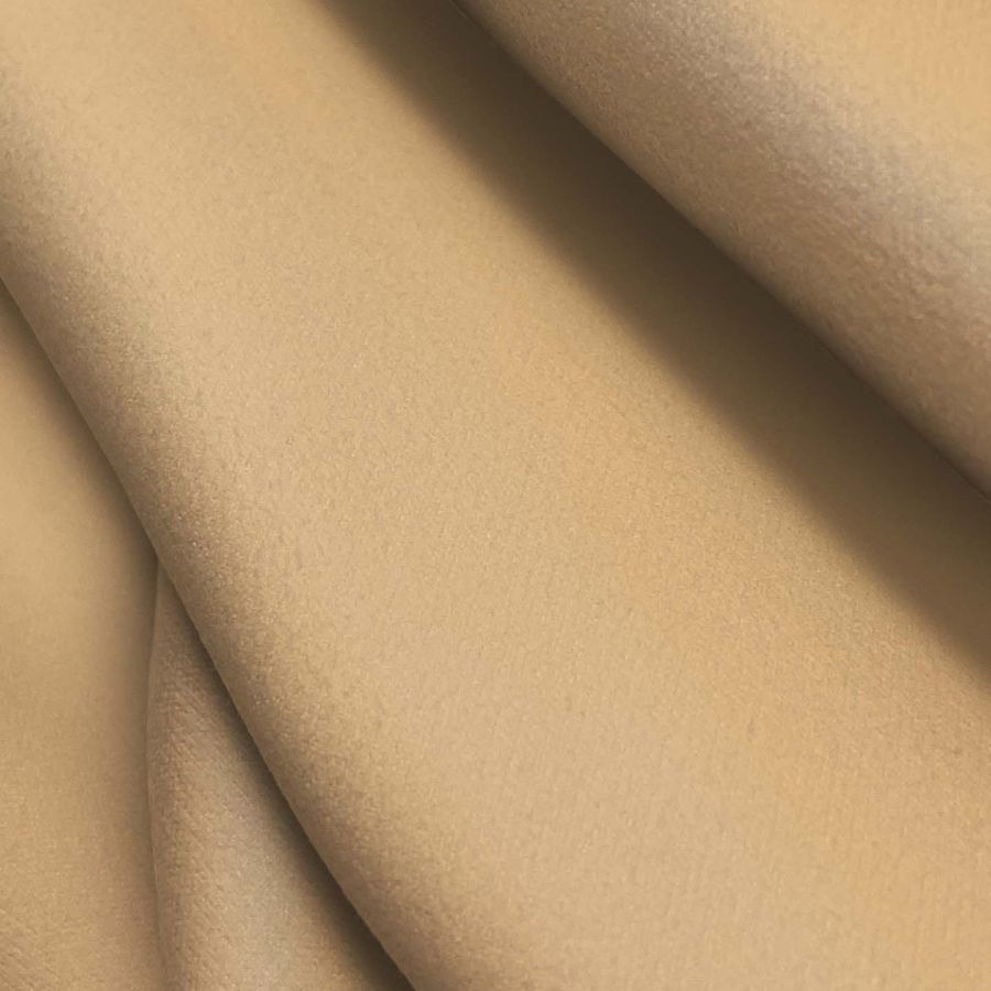 La tela base de esta prenda es Microfibra para Toalla - Swing, compuesta por 100% poliéster, con un gramaje de 200 gr/m2 y un ancho de tela de 160 cm. Su color liso impreso es Naranja, Calabaza Suave, con una tinta Cyan de 7, Magenta de 30, Yellow de 50 y Black de 0, lo que equivale al CMYK 7 30 50 0. Este color secundario presenta un tono cálido y acogedor, que combina perfectamente con tonalidades en beige, amarillo, marrón o verde oscuro.