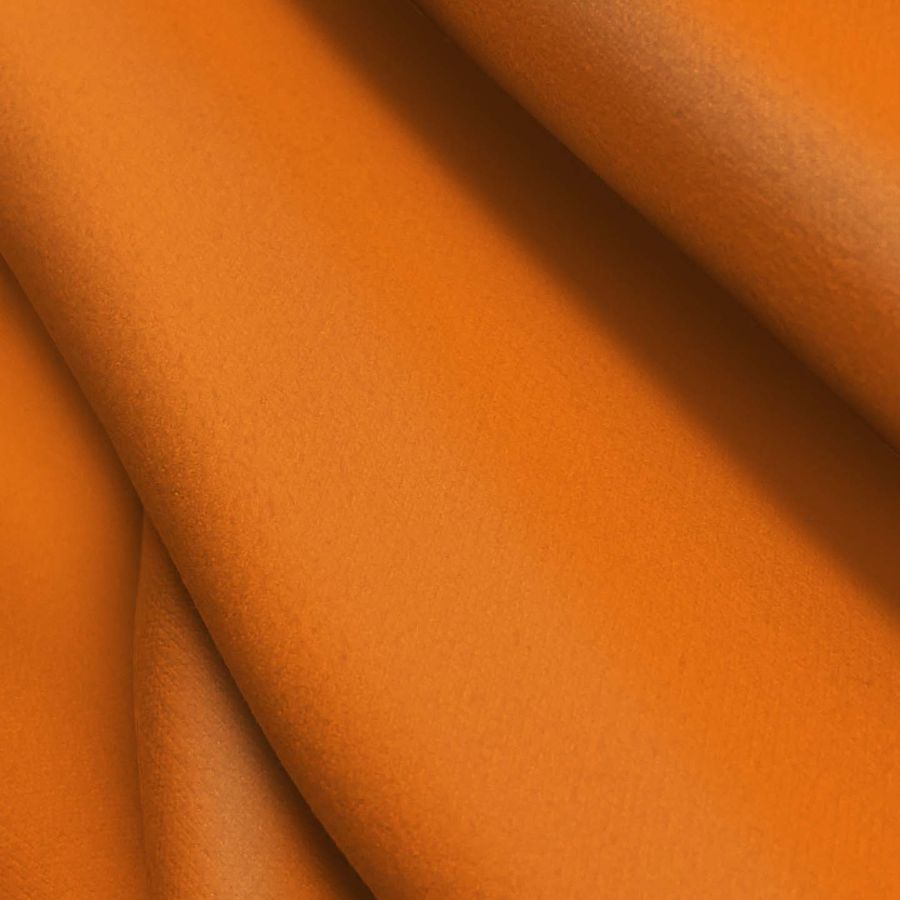 El color Naranja Cangrejo tiene un carácter vivo y energético, que se combina bien con otros colores cálidos como el rojo, el amarillo y el rosa, pero también con tonos más suaves como el gris o el blanco. La textura de la tela base es suave y lisa al tacto, lo que la hace ideal para aplicaciones en productos de baño y deportivos como toallas, albornoces, paños o textiles para el hogar.