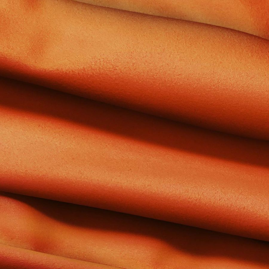 La tela base de esta tela es la Microfibra para Toalla - Swing, compuesta por 100% de poliéster con un gramaje de 200 gr/m2 y un ancho de 160 cm. El color liso impreso en esta tela es naranja sinopia, con un CMYK de 17 72 100 6. Este color es un naranja intenso con tonos rojizos y marrones, que evoca la energía y la vitalidad. Combina particularmente bien con tonos verdes y amarillos, aportando un contraste equilibrado y vibrante a cualquier diseño. Cabe destacar que esta tela está impresa con el color liso a una sola cara por impresión digital textil, lo que significa que únicamente la parte superior de la tela está impresa con el color liso.