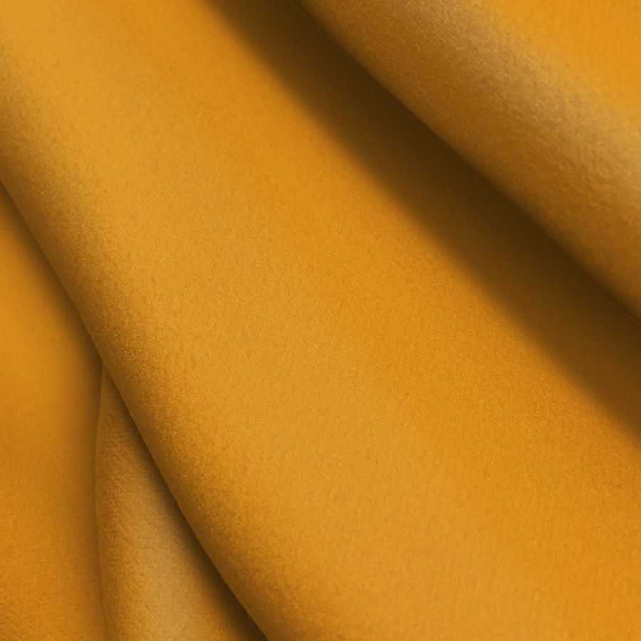 La tela base es la Microfibra para Toalla - Swing, un tejido suave y liso de microfibra compuesto al 100% de poliéster, con un gramaje de 200 gr/m2 y un ancho de 160 cm. El color impreso en la tela es un amarillo caléndula vibrante, creado con una combinación de cian 0, magenta 49, amarillo 93 y negro 0. Este color secundario radiante se combina muy bien con tonos naturales, así como con tonos cálidos y vibrantes, lo que permite una amplia gama de opciones para la decoración. La tela está impresa con el color liso a una sola cara por impresión digital textil, lo que garantiza su calidad.