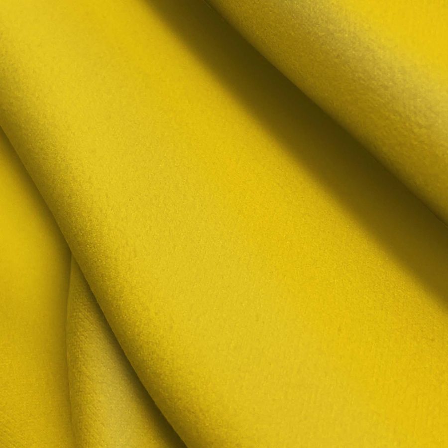 La tela base es la Microfibra para Toalla - Swing, compuesta por 100% poliéster, con un gramaje de 200 gr/m2 y un ancho de tela de 160 cm. El color impreso es un amarillo cromo con una tinta cyan de 0, una magenta de 21, una yellow de 91 y una black de 0. Este color secundario se caracteriza por tener un tono cálido y vivo, que combina muy bien con colores naturales, como el beige, el marrón o el blanco, así como con tonos más fuertes y brillantes como el verde o el rojo. Es importante resaltar que la tela está impresa con el color liso a una sola cara por impresión digital textil, lo que significa que no es un tejido tintado, sino impreso por una sola cara.