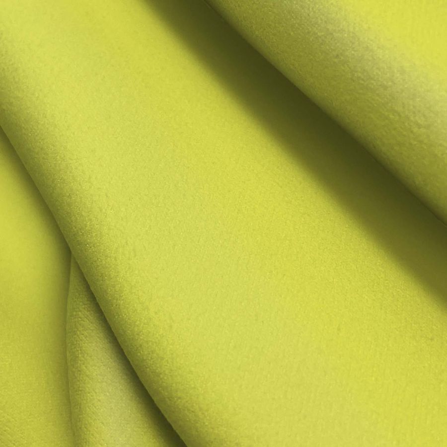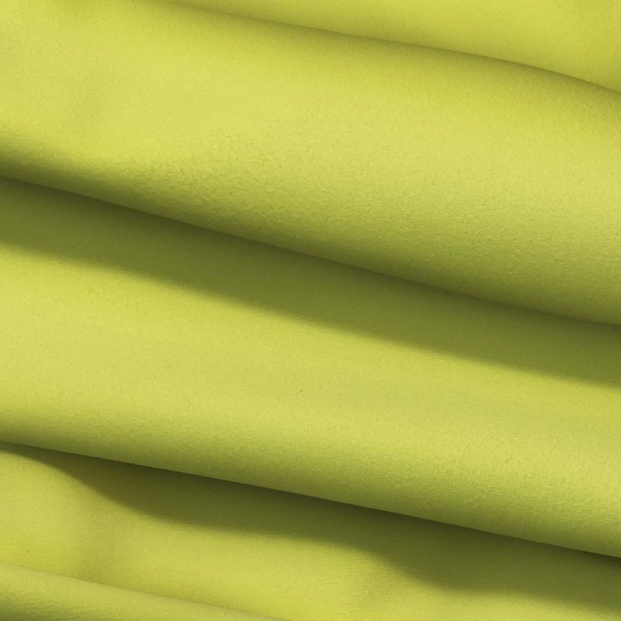 La tela base Microfibra para Toalla - Swing es de tipo microfibra, 100% poliéster, con un gramaje de 200 gr/m2 y un ancho de 160 cm. El color liso impreso es Amarillo Fulminante, con una tinta Cyan de 14, Magenta de 0, Yellow de 75 y Black de 0, lo que da un CMYK de 14 0 75 0. Esta tonalidad se presenta como un amarillo intenso y vibrante.
