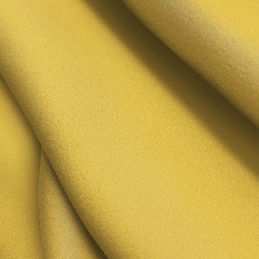 La Microfibra para Toalla - Swing tiene una textura suave y lisa al tacto, lo que la hace adecuada para su uso en toallas de baño y una amplia variedad de aplicaciones en el hogar, como paños de cocina. Además, debido a su gramaje, es una tela de buena calidad y durabilidad. Por otro lado, el color Amarillo Llama impreso sobre la base poliéster aporta resistencia a la decoloración y a la pérdida de vibración del color.