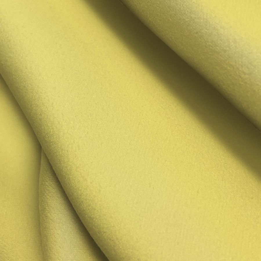 La tela base de esta prenda es la Microfibra para Toalla - Swing, una tela de microfibra 100% poliéster con un gramaje de 200 gr/m2 y un ancho de 160 cm. Su color liso impreso es un amarillo plátano con un CMYK de 2 6 64 0. Este color secundario se considera un amarillo suave y luminoso, que combina bien con otros colores como el azul cielo, el naranja, el gris claro y el verde pálido.