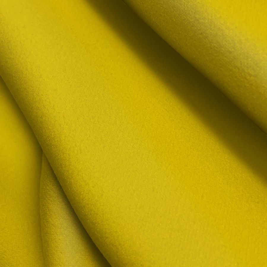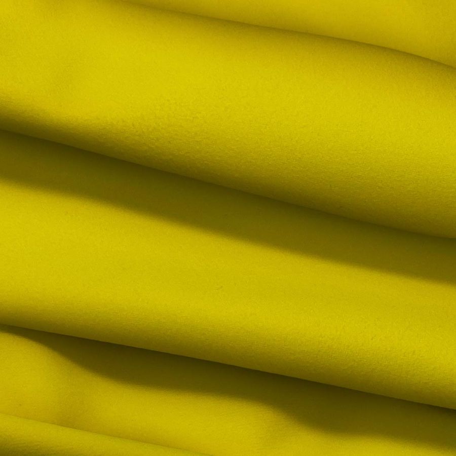 La tela base, Microfibra para Toalla - Swing 100% Poliéster, tiene un gramaje de 200 gr/m2 y se presenta en un ancho de 160 cm. El color liso impreso es Amarillo Señal con un CMYK de 12 22 96 2, lo que le da un tono amarillo intenso y vibrante con una presencia alta de amarillo y de magenta y un bajo nivel de negro, lo que le confiere una tonalidad primordialmente cálida. Al combinarlo con otros colores, es recomendable optar por colores neutros como blancos, grises o beige, ya que estos tonos hacen que resalte aún más el amarillo.