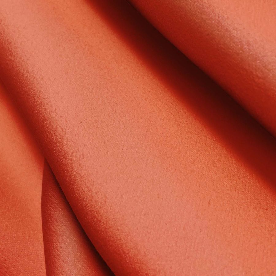 La tela base de Microfibra para Toalla - Swing es un tejido de gramaje 200 gr/m2 y una composición 100% poliéster con un ancho de 160 cm. El color liso impreso en la tela es una combinación de Naranja y Salmón, con una tinta Cyan y Magenta del 0% y una tinta Yellow y Black del 76%, con un valor CMYK de 0 76 76 0. Este color es una tonalidad vibrante y exótica que al mismo tiempo transmite tranquilidad y calidez, combina muy bien con tonalidades en tono azul y verde, aportando una sensación fresca y cítrica.