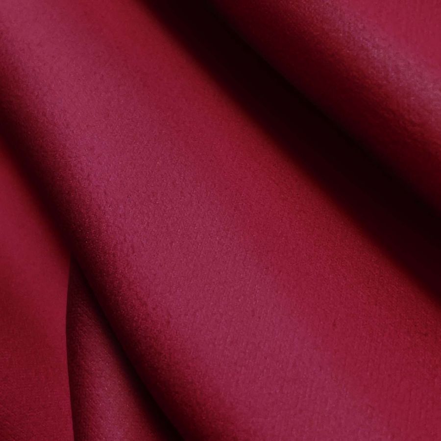 La tela base es la Microfibra para Toalla - Swing, con una composición de 100% POLIÉSTER, un gramaje de 200 gr/m2 y un ancho de 160 cm. El color liso impreso es Rojo Borgoña, con los siguientes atributos de tinta: Cyan 30, Magenta 100, Yellow 76 y Black 40, con un CMYK de 30 100 76 40. Este color secundario representa la pasión, el amor y la elegancia, siendo ideal para piezas de toallas y albornoces. Combina perfectamente con tonos crudos, beige, marrones y el blanco.