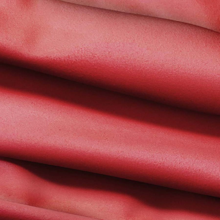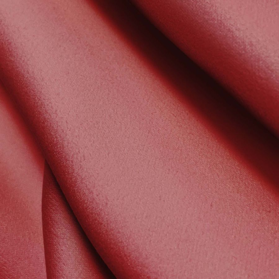 La tela base es una microfibra para toalla llamada Swing, 100% poliéster, de 200 gr/m2 de gramaje y con un ancho de 160 cm. El color liso impreso es rojo con destello agridulce, con una composición de tinta cian 19, magenta 78, amarillo 60 y negro 8, conformando un CMYK de 19 78 60 8. Este color secundario aporta una sensación de vitalidad y pasión, evocando emociones de acción, incentivo y alegría. Combina especialmente bien con tonos contrapuestos, como el verde o el azul para crear contraste, o con tonos amarillos y naranjas para una gama cromática más atrevida.