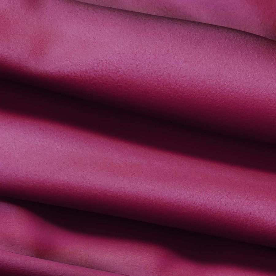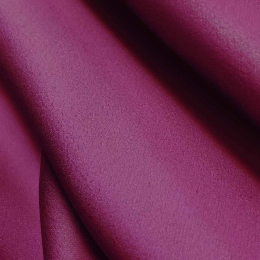 La tela base de este tejido es una microfibra 100% poliéster con un gramaje de 200 gr/m2 y un ancho de 160 cm. El color liso impreso es un rojo frambuesa oscuro con una combinación de tintas CMYK de 40 93 30 26. Este color secundario tiene una tonalidad vibrante y sensual que evoca la pasión y el romance. Complementa muy bien con colores cálidos como el naranja, amarillo y rosa, pero también con colores fríos como el verde y el azul oscuro.