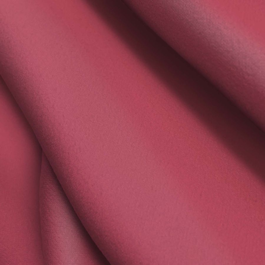 La tela base es Microfibra para Toalla - Swing, compuesta en un 100% por poliéster, con un gramaje de 200 gr/m2 y un ancho de 160 cm. El color liso impreso es Rojo Popstar, el cual se ha conseguido mediante la técnica de sublimación, con un CMYK de 20, 78, 45 y 9, respectivamente. Este color es un rojo intenso y vibrante, con tintes magenta y una tonalidad media. Junto a este tono secundario, se combinan muy bien algunos colores aportados por su tinta, como un verde oscuro, un azul marino y un negro.
