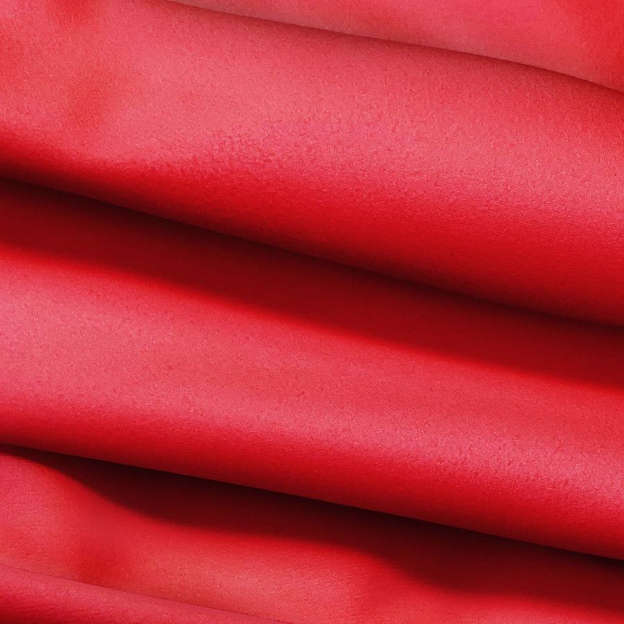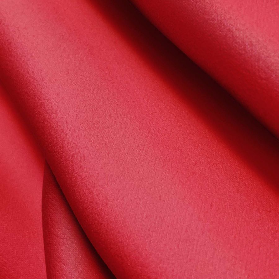 La tela base es la Microfibra para Toalla - Swing, con una composición 100% poliéster y un gramaje de 200 gr/m2. El color liso impreso es Rojo Imperial, cuya fórmula de color CMYK es 0 92 72 0, lo que significa que tiene tonos muy intensos de Magenta y Amarillo y no contiene cian. Este color se puede combinar con tonos amarillos y naranjas para crear un contraste cálido y tropical. Cabe destacar que el tejido está impreso con este color liso a una sola cara por impresión digital textil, lo que significa que la impresión tiene una aplicación uniforme en la superficie del tejido.