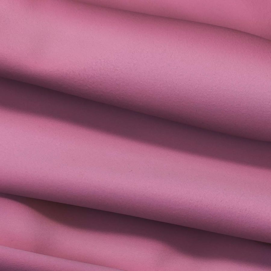 La tela base de este tejido es una microfibra para toalla de tipo suave y lisa, compuesta de 100% poliéster, con un gramaje de 200 gr/m2 y un ancho de 160 cm. El tejido es de color rojo con matices de violeta pálido, el cual se obtiene a través de la tecnología de impresión por sublimación, con un CMYK de 11 68 20 0, donde la tinta magenta es la predominante. Este color secundario aporta un efecto sereno y suave a la microfibra, creando una sensación de armonía en la vista y el tacto. Combinado con otros colores como el blanco, gris o azul oscuro, crea un ambiente fresco y relajante.
