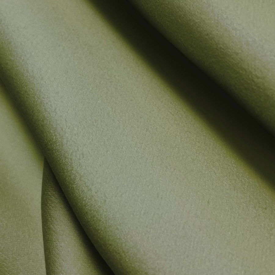 La tela base es la Microfibra para Toalla - Swing de 100% poliéster con un gramaje de 200gr/m2. El color liso impreso es de tonalidad verde oliva, generado por una combinación de tintas con los valores siguientes: 49 de cian, 33 de magenta, 67 de amarillo y 17 de negro, obteniendo un resultado en CMYK de 49 33 67 17. Este color oliva representa la paz, la armonía y la conexión con la naturaleza, ideal para ambientes de relajación y tranquilidad. Este color se combina en particular con colores neutros como el beige, marrón y gris.