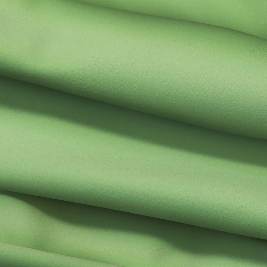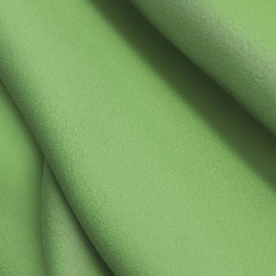La tela base es la Microfibra para Toalla - Swing, con una composición de 100% poliéster y un gramaje de 200 gr/m2. Su ancho es de 160 cm y está diseñada para su uso en aplicaciones de hogar como toallas y paños, así como en ropa deportiva como toallas y albornoces. En cuanto al color liso impreso, es de un vibrante verde pistacho con una tinta cyan del 50%, tinta yellow del 68% y sin tinta black. El CMYK es 50 0 68 0.