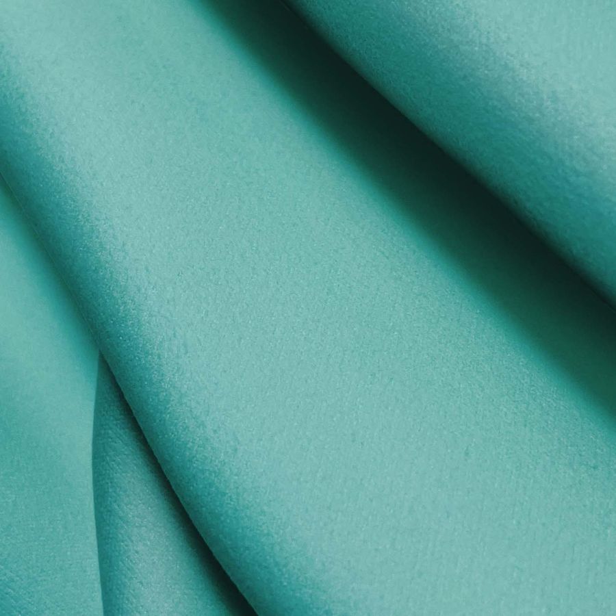 La tela base de este tejido es una Microfibra para Toalla - Swing de 100% poliéster, con un gramaje de 200 gr/m2 y ancho de 160 cm. El color liso impreso es una combinación de verde y turquesa con un CMYK de 62 0 33 0, lo que le da un aspecto fresco y moderno. Este color combinado en particular con tonos marrones, beige y blanco, creando una paleta armoniosa y elegante.