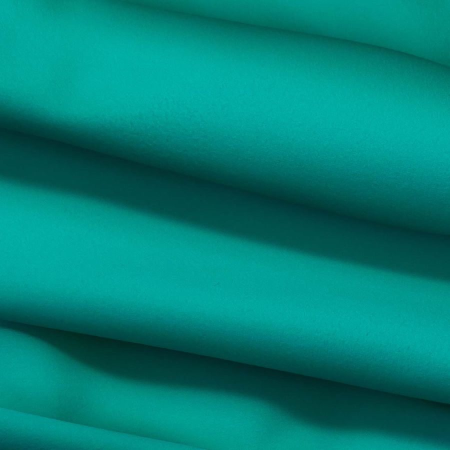 La Microfibra para Toalla - Swing es una tela de tipo microfibra compuesta en un 100% por poliéster, con un gramaje de 200 gr/m2 y un ancho de tela de 160 cm. El color liso impreso es un tono de verde azulado medio, obtenido a través de la combinación de 80% de tinta cyan, 13% de tinta magenta, 52% de tinta yellow y 1% de tinta black, con un perfil de impresión CMYK de 80 13 52 1.
