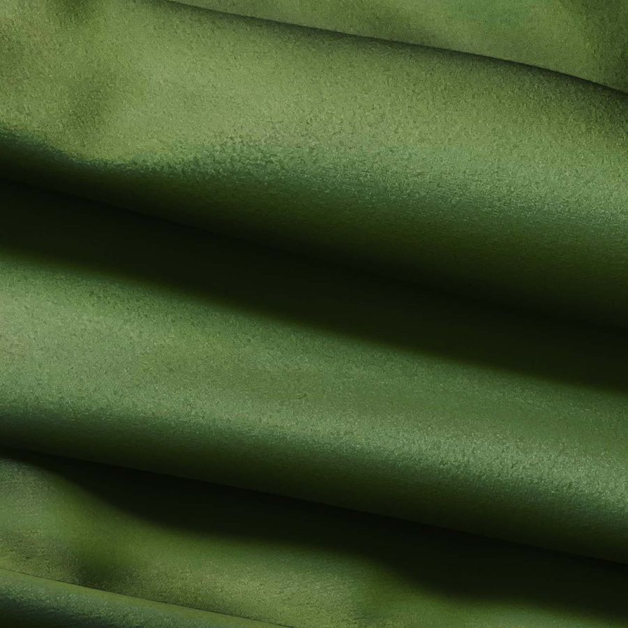 Cabe destacar que la tela base está impresa con color liso a una sola cara mediante impresión digital textil, lo que significa que no se trata de un tejido teñido sino impreso por una sola cara. Esta técnica de impresión es muy precisa y permite lograr, en este caso, la tonalidad de verde deseada con gran fidelidad.