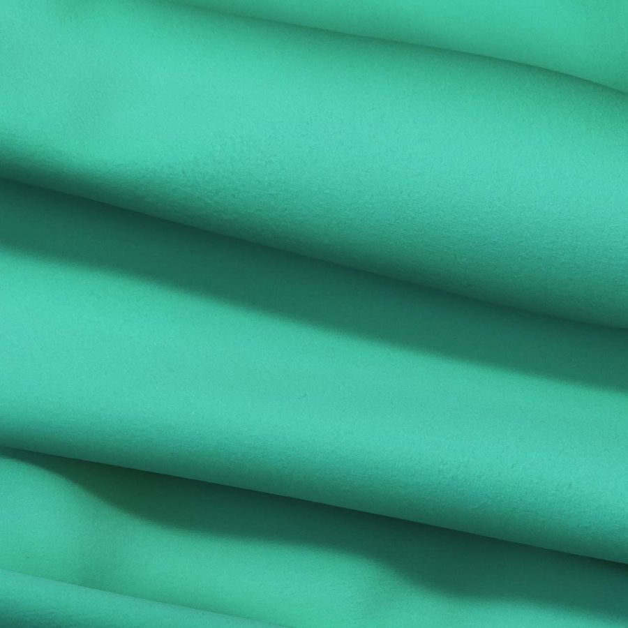 La tela base es la Microfibra para Toalla - Swing, de composición 100% polyester y con un gramaje de 200 gr/m2, de un ancho de 160 cm. El color liso impreso es verde eucalipto, con un CMYK de 63 0 48 0, lo que indica una tonalidad verdosa con cierta intensidad en el matiz, que la hace ideal para aplicaciones veraniegas y deportivas.