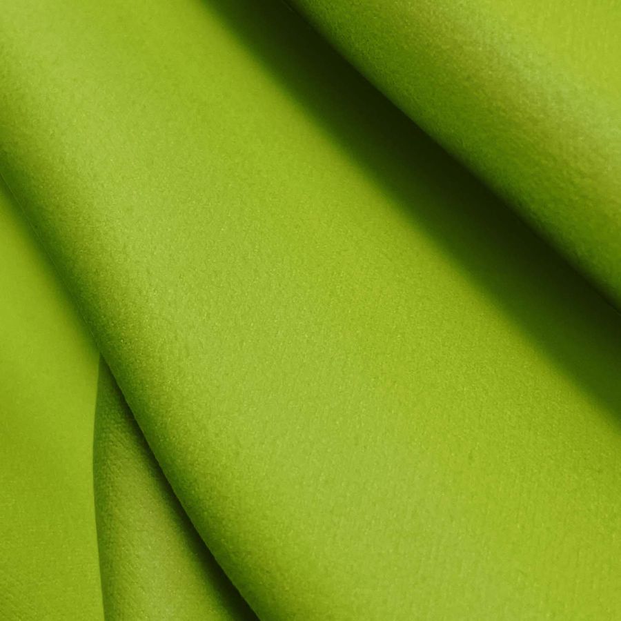 La tela base es Microfibra para Toalla - Swing, un tipo de microfibra compuesta de 100% poliéster con un gramaje de 200 gr/m2 y un ancho de 160 cm. El color liso impreso es un verde intenso, similar al color de la iguana, con un CMYK de 48 3 100 0. La tela base es suave al tacto y cuenta con una textura lisa. El color verde iguana es un color secundario que transmite energía y vitalidad. Este tono puede combinarse con tonos neutros como el negro o el blanco para lograr un contraste armonioso, así como también con otros tonos de verde para crear combinaciones tonales. Es imprescindible destacar que el tejido está impreso con el color liso a una sola cara por impresión digital textil, lo que significa que no es un tejido tintado sino impreso por una sola cara.