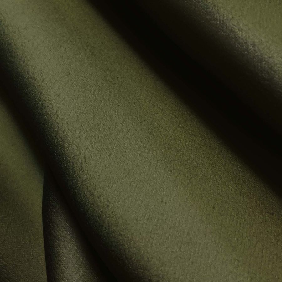La tela base es la Microfibra para Toalla - Swing, elaborada con 100% poliéster, con un gramaje de 200 gr/m2 y un ancho de 160 cm. El color liso impreso es Verde Pardo, con un CMYK de 63 56 87 66, lo que indica un tono verdoso oscuro con pinceladas marrones. Este color secundario evoca a la naturaleza y a la tranquilidad, y combina especialmente con tonalidades terrosas, naranjas y amarillos.