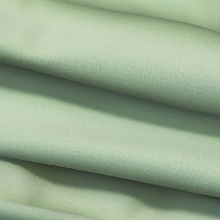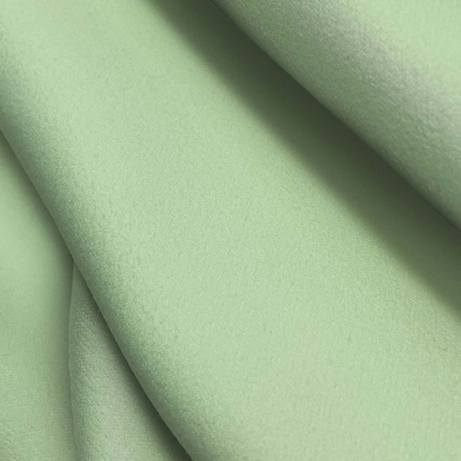 La tela base es una Microfibra para Toalla - Swing, compuesta en su totalidad por POLIÉSTER con un gramaje de 200 gr/m2 y un ancho de 160 cm. El color liso impreso es un Verde pastel con un CMYK de 28 0 40 0. Este tono se caracteriza por transmitir frescura, calma y naturalidad. Combina de manera especial con tonos cálidos como rosados y amarillos claros, así como con tonos fríos como azules y turquesas.