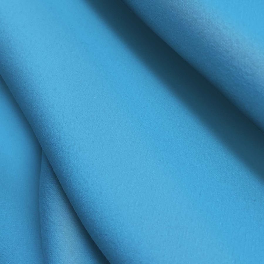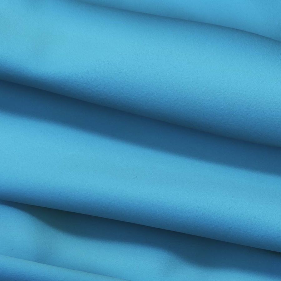 La tela base Microfibra para Toalla - Swing tiene un gramaje de 200 gr/m2, está compuesta de 100% poliéster y posee un ancho de 160 cm. Su color liso impreso es Azul Bebé con una combinación de tinta Cyan a un 64% y Magenta a un 15% resultando en un CMYK 64 15 0 0. Este color secundario se puede describir como un tono suave y delicado que se combina muy bien con colores complementarios como el blanco, el gris claro y el rosa pastel.