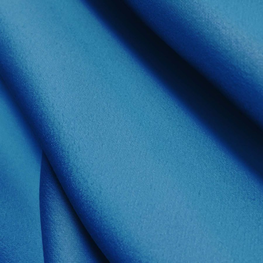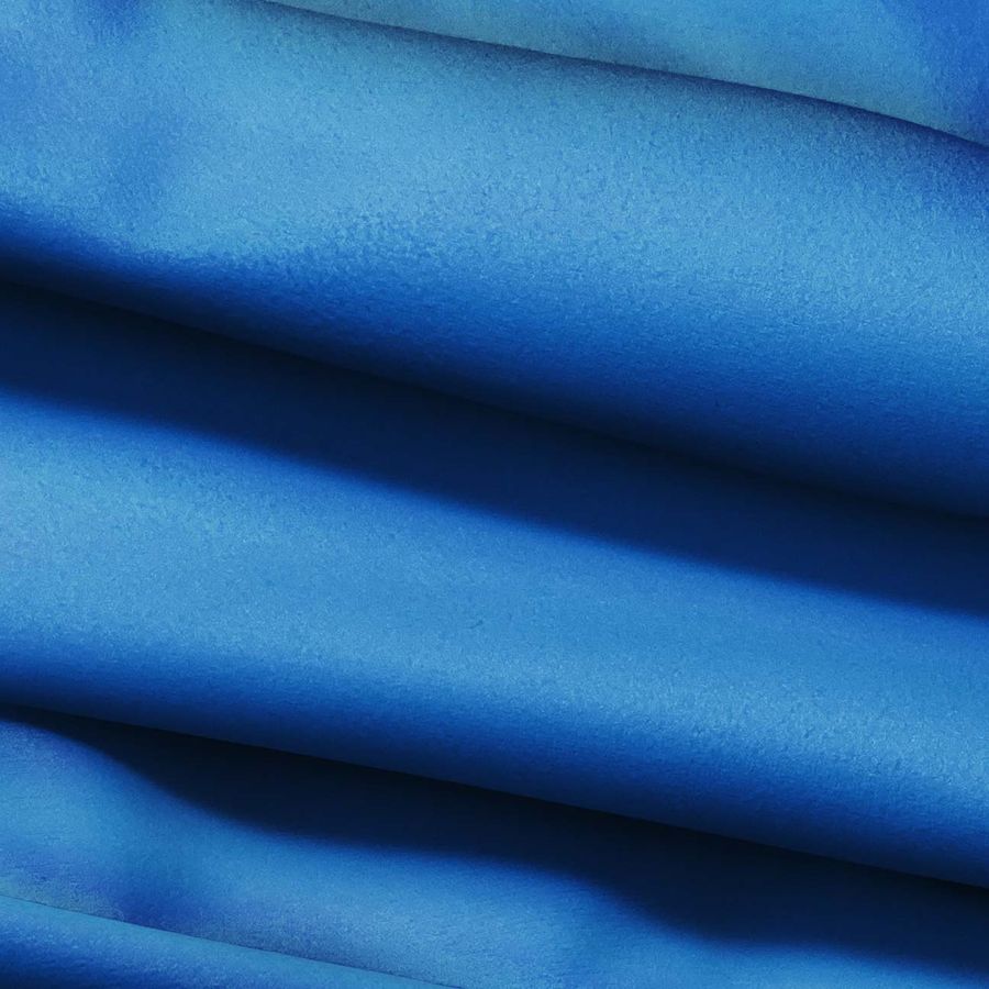 La tela base, Microfibra para Toalla - Swing, está compuesta al 100% de poliéster con un gramaje de 200 g/m2 y un ancho de 160 cm. Presenta una textura suave y una característica lisa en su tacto. El color liso impreso es de tonalidad Azul - Azul Celeste con una combinación de tintas Cyan (84), Magenta (49), Yellow (4) y Black (0), dando como resultado un CMYK de 84 49 4 0. Este color secundario evoca un ambiente fresco y natural, especialmente relacionado con la playa y el mar, siendo combinable con tonalidades neutras y también con tonos turquesa y verde agua.