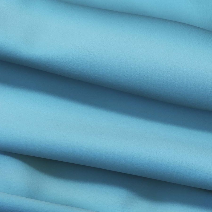 La tela base de este tejido es Microfibra para Toalla - Swing, compuesta por 100% poliéster con un gramaje de 200 gr/m2 y ancho de 160 cm. El color impreso es Azul, con un CMYK de 55 3 0 0. El color secundario, Azul claro, tiene un bajo grado de saturación y es utilizado comúnmente como complemento dentro de una paleta de colores más amplia, en combinación con tonos más oscuros de azules, grises y blancos. Es suave al tacto y resistente al desgaste, con una textura lisa y brillante. La tela está impresa con color liso a una sola cara mediante impresión digital textil.