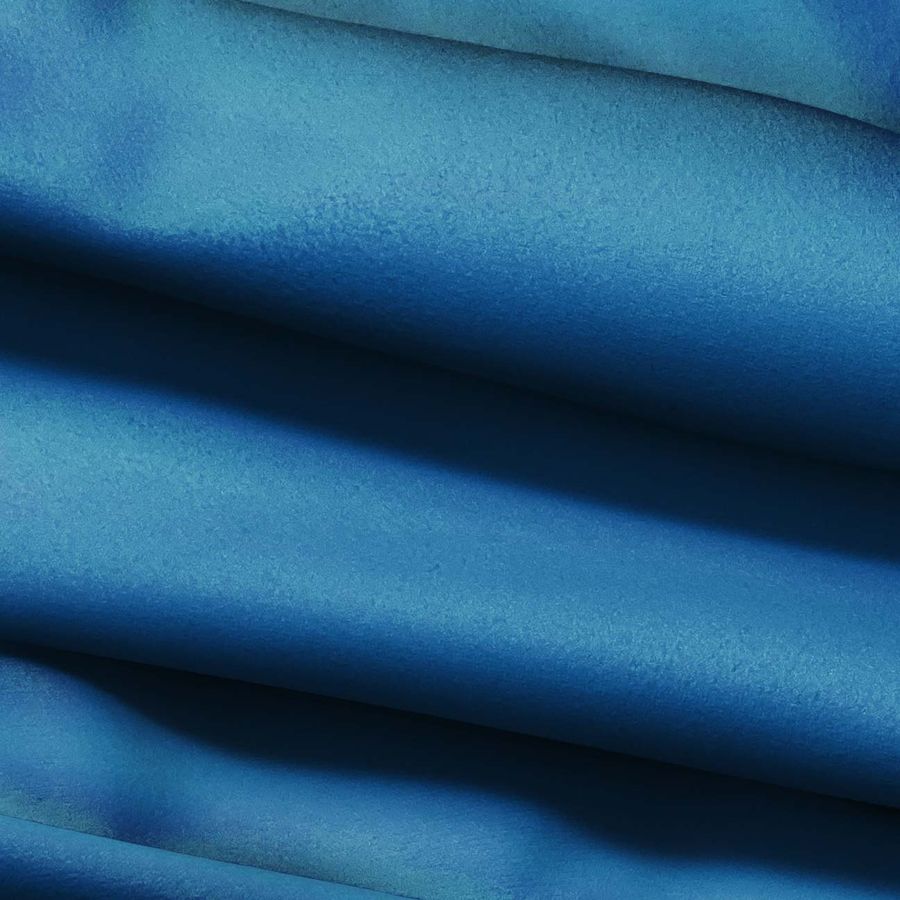 La tela base es una microfibra de poliéster de 200 gr/m2 llamada Microfibra para Toalla - Swing, con 160 cm de ancho y una composición de 100% poliéster. El color liso impreso es Azul Cosmos con un CMYK de 87 50 25 9, siendo principalmente un tono azul con matices verdes y violetas.